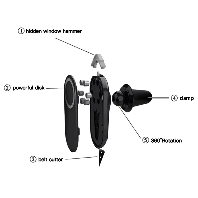Ο σχεδιασμός 3 σε 1 μετατρέπει αυτό το αξεσουάρ από μια απλή βάση σε ένα εργαλείο έκτακτης ανάγκης μέσα σε δευτερόλεπτα. Το κρυφό σφυρί παραθύρου είναι διακριτικό αλλά αποτελεσματικό και ο αιχμηρός, αντισκωριακός κοπτικός ζωνών χρησιμοποιεί ένα κράμα ακριβείας για να κόβει τις ζώνες ασφαλείας αμέσως σε περιπτώσεις έκτακτης ανάγκης.