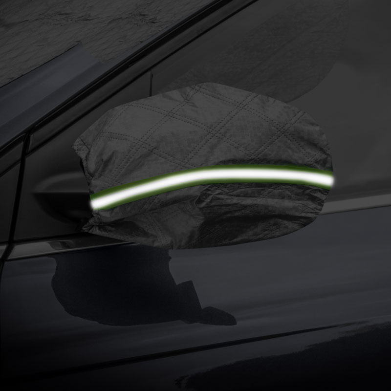Χαρακτηριστικά ασφαλείας για το αδιάβροχο κάλυμμα αυτοκινήτου: Οι τσέπες του καθρέφτη έχουν ανακλαστικές λωρίδες που κάνουν το αυτοκίνητό σας πιο ευκρινές στο σκοτάδι ή στο χιόνι, μειώνοντας τους κινδύνους στους χώρους στάθμευσης.